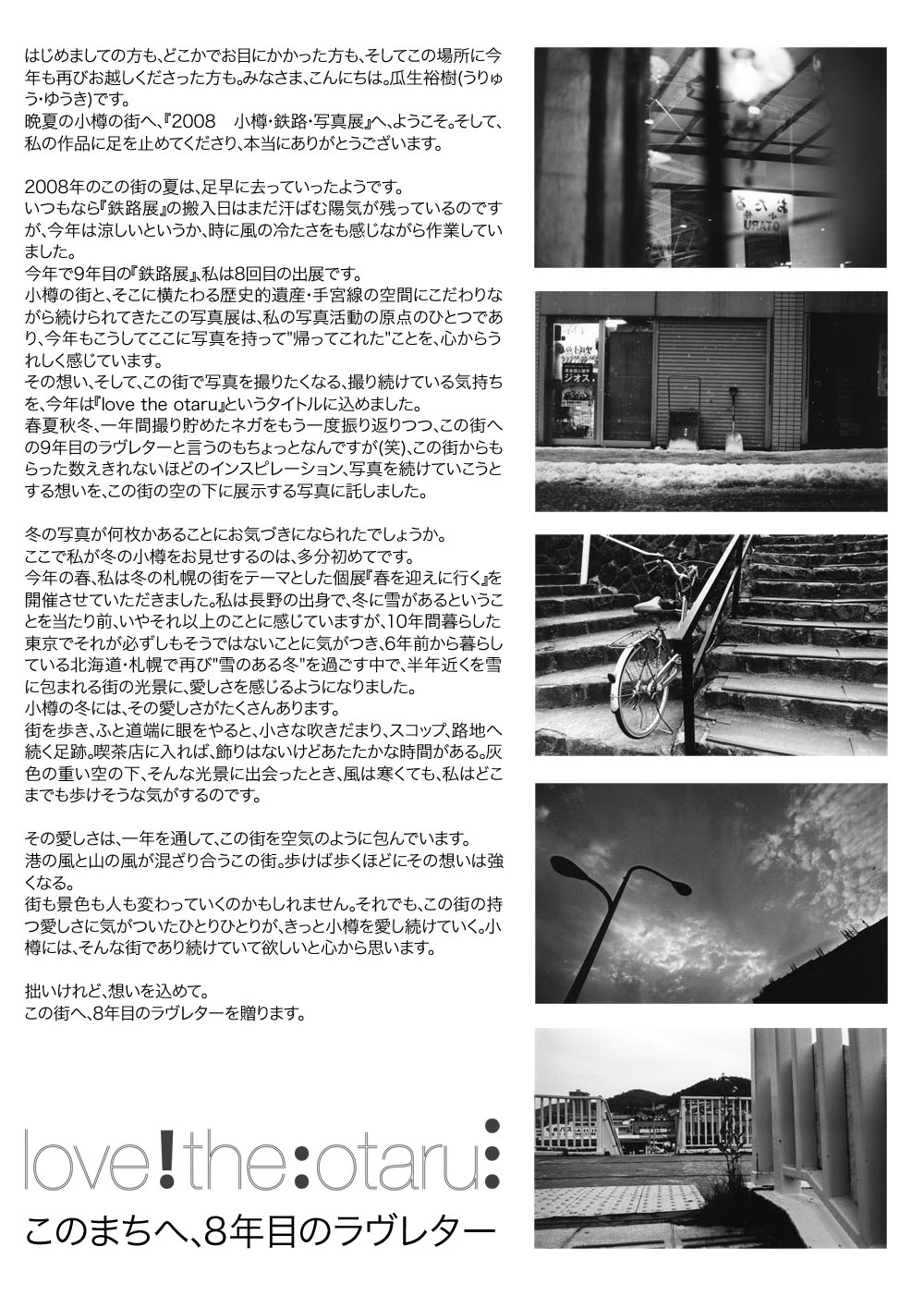 【表面】 ●表紙 ●表紙のつぶやき(東雲町・水天宮) ●love the otaru letter 1 - 坂の街で ●裏表紙 *組版の都合上、ペーパー版とページ順が異なります